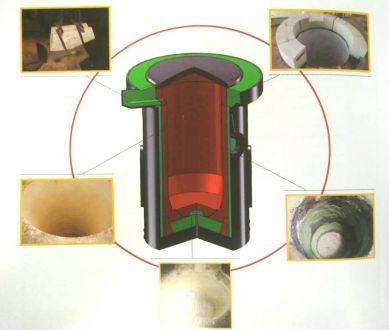 為了能使方便在拆解推出需要重新施工的爐襯時,我們一般都會使用備襯,也叫滑動平面層,使用備襯能省力的去除需要重新施工的爐襯,同時還能起到一個保護線圈漿料的作用,我們現(xiàn)在使用石棉布為備襯,石棉布在作為背襯使用方面一直有其不可避免的缺點,首先是其石棉成分對人體健康的影響,因為石棉纖維在被人體吸入肺部后是很難排出體外的,嚴重的還會產(chǎn)生致癌性,所以大家無論是在工作中的任何作業(yè)時都應該配備好公司所配發(fā)的勞保用品。第二,就是石棉布的韌性不夠,我們在爐底和爐襯施工時經(jīng)常有不小心碰到石棉布而造成石棉布破損,給我們帶來不小的麻煩,而這些破損處如果萬一沒有及時處理就有可能有影響爐襯安全的問題出現(xiàn)。還有一點就是其熱導率的問題,石棉本身就是一種隔熱物體,在我們的爐襯使用中爐襯一直有著比較分明的溫度梯度,由于石棉布的熱導率較差和其厚度過厚等原因會影響到爐襯的熱損效果造成爐襯松散層厚度減少,這給我們的生產(chǎn)使用過程帶來一定的安全隱患。由于石棉布存在著以上缺點,現(xiàn)在一些鑄造廠家都在使用云母紙來替代石棉布,云母紙有較好的韌性,而且其厚度只有0.32毫米,根本不會影響到爐襯的溫度梯度。另外由于云母紙的不透氣性也能大大降低爐襯在燒結過程中由于爐襯料中的水氣問題造成的誤報警次數(shù)等這些優(yōu)點使云母紙迅速的普遍作為備襯使用。在鋪設備襯前要根據(jù)電爐的大小高度提前準備好,鋪設時先清除上次遺留在爐壁上的材料,清除干凈后才能鋪設,鋪設時要一人下到爐膛內部,另一人則站在爐子上面把備襯料垂直放下,長度為超出爐底頂出塊10-20CM最好,然后由爐內人員負責將它捋平,讓其緊貼爐壁,然后在放第二塊備襯,放第二塊備襯時要和第一塊重疊搭接10CM左右,防止加爐襯料時沖開備襯,依次類推放下其剩余備襯料,直到把爐子線圈完全遮住.